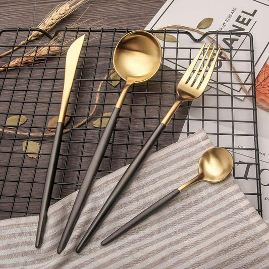 Modern Portugal Cutlery Set 3 Piece - Black & Gold