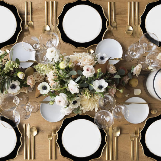Plastic Scalloped Underplate - Black & Gold Trim