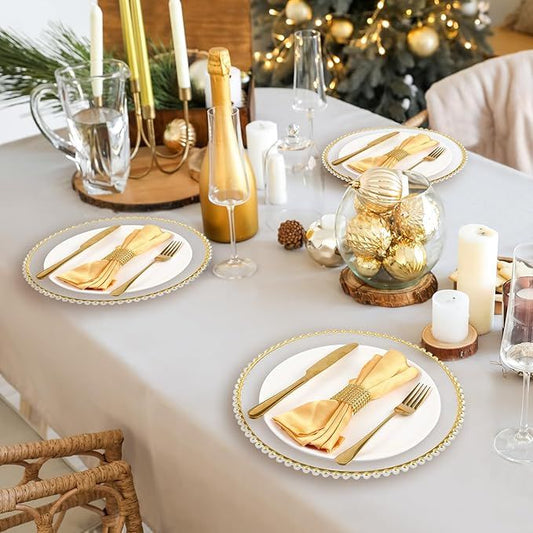 Plastic Beaded Underplate White With Rose Gold