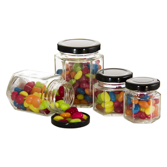 Regent Glass Hexagonal Jar Black Lid 130ml