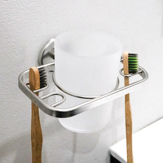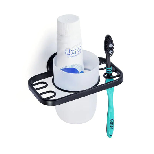 Stainless Steel Toothbrush Holder With Tumbler - Matt Black
