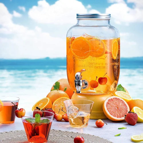 Glass Drinks Dispenser With Tap & Iron Stand 4LT