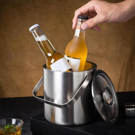 Double Wall Stainless Steel Ice Bucket with Lid (1.6L)