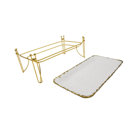 White Serving Platter on Gold Stand - 16x30x12cm