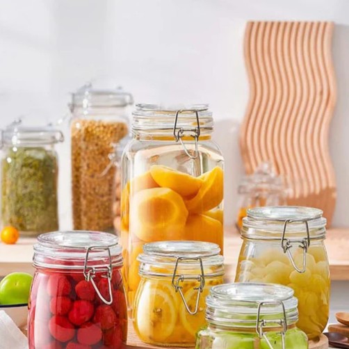 Square Glass Jar with Bamboo Lid - 10x15cm