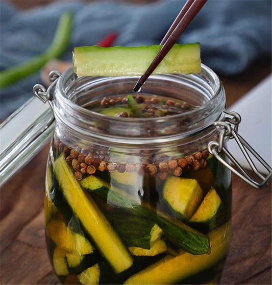 Square Glass Jar with Bamboo Lid - 10x20cm
