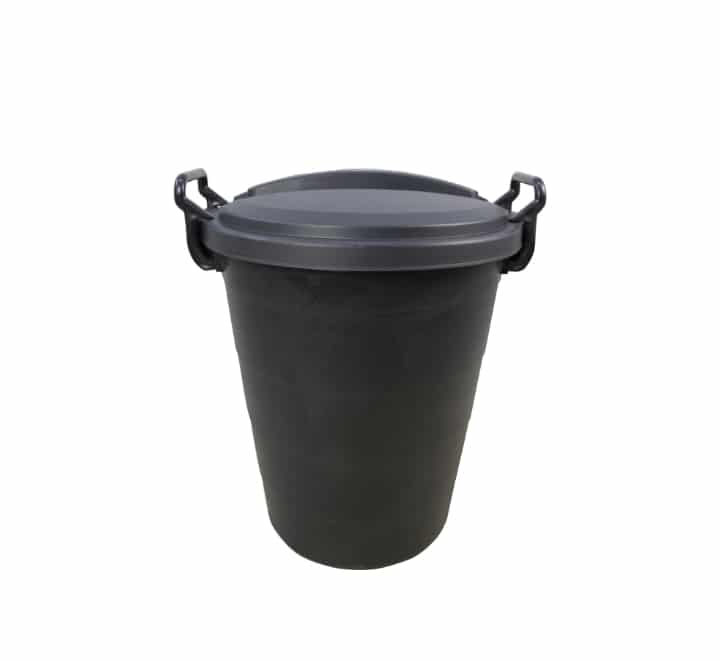 This 70L black dustbin with lid is a versatile waste storage solution suitable for both indoor and outdoor use. Made from durable plastic, it features a tightly fitting lid to keep contents secure and odors contained. Its compact size and sturdy construction make it ideal for homes, small businesses, or garden areas.