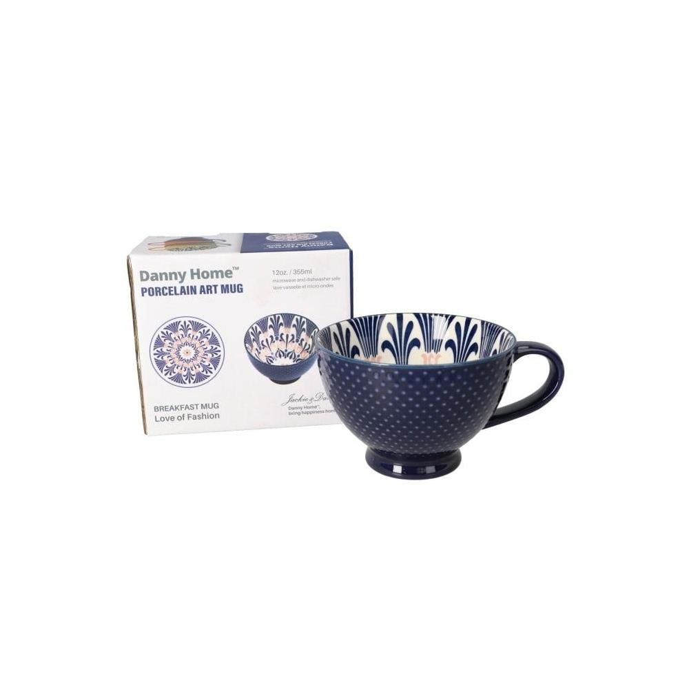 Stylish porcelain mug featuring distinctive art-themed design in white and blue colorway. Crafted from high-quality porcelain with durable construction for everyday use, from breakfast to dinner.