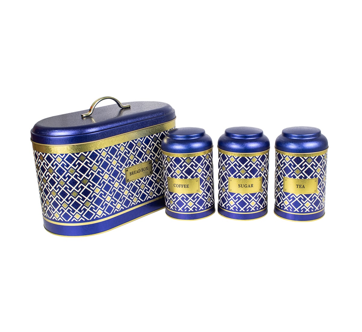 - 4-Piece Set: Includes 1 bread bin and 3 matching canisters for tea, coffee, and sugar.